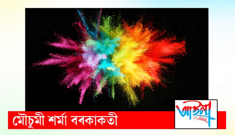 “মেঘবৰ্ণ, মেঘবৰ্ণ চোৱাহিচোন এবাৰ ইমান ধুনীয়া কৰিছে আকাশখন। “