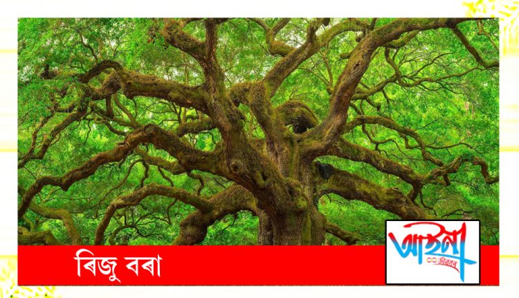 বহু পুৰণি গছ, ডালবোৰৰ স্তম্ভমূলে মাটিলৈ আগুৱাই আহি খামুচি ধৰিছে । সেই ডালবোৰৰ একো নহ’ল । এডালৰ শিপাই মাটি পোৱাগৈ নাছিল । ধুমুহাত সেইডাল বাগৰি পৰিছিল —